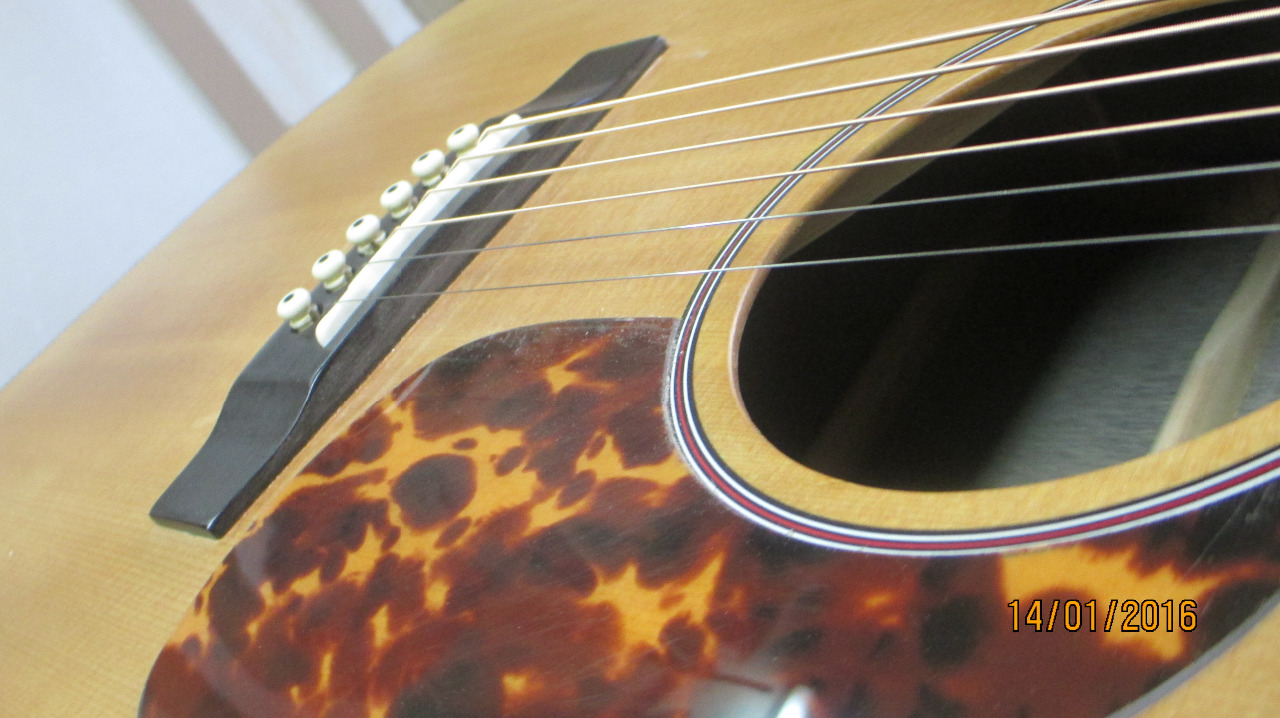 kytara Martin DX1R po drobné úpravě naší firmou, výměna původní palisandrové kobylky za ebenovou, dodání chybějících hran a výložek přední desky v kombinaci želvovina + herringbone, nový pickguard želvovina místo černé, vrchní deska smrk sitka, krk stratabond, hmatník palisandr, tělo HPL dezén palisandr, matná vrchní deska, na přání můžeme namontovat snímání nástroje, kytara má plný vyrovnaný zvuk, velmi dobrý nástroj, cena 11 500,- tel: 773 541 471